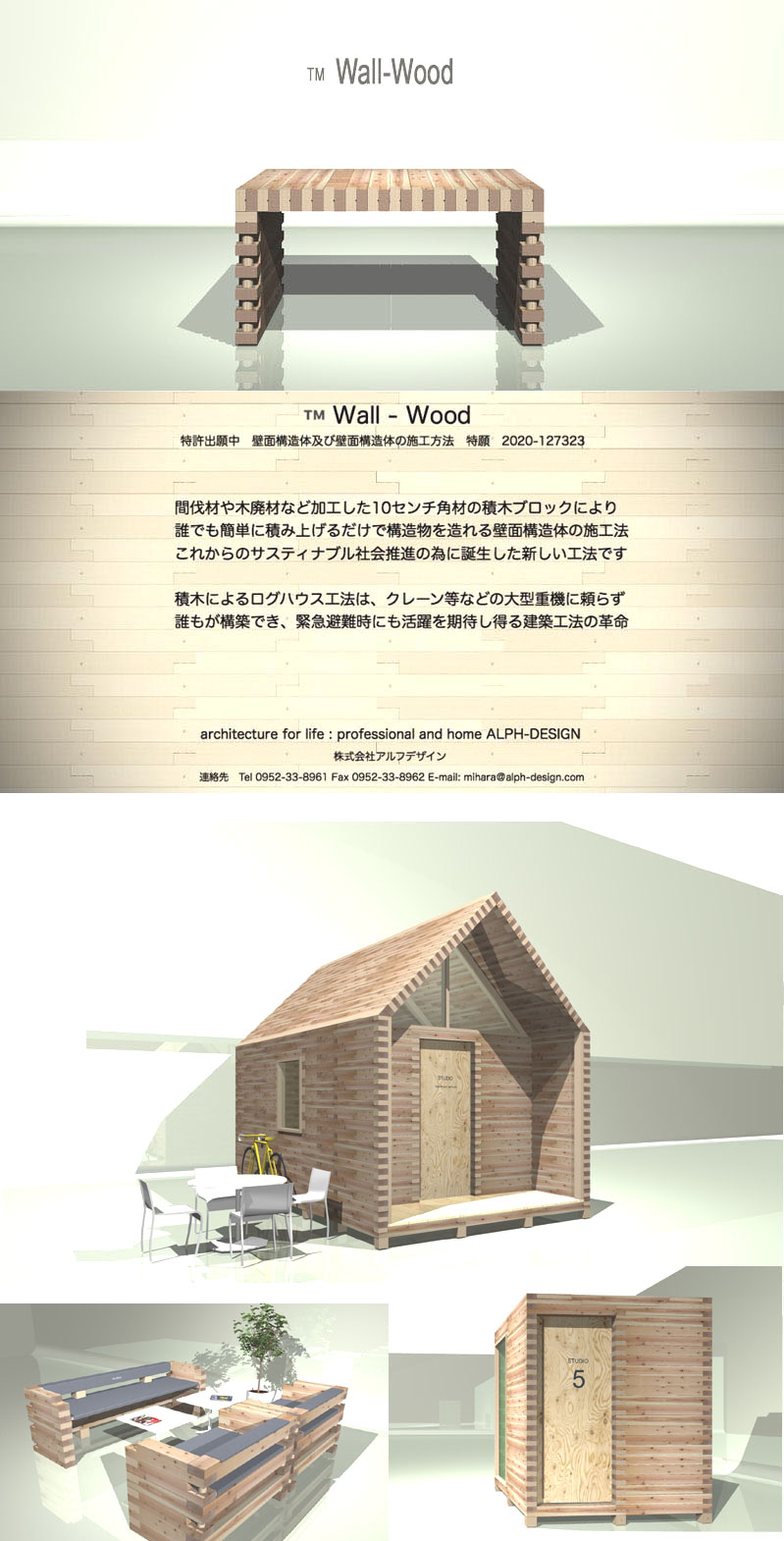 壁面構造体と壁面構造体の施工方法によるWall-Woodの積木部材を標準化・規格化